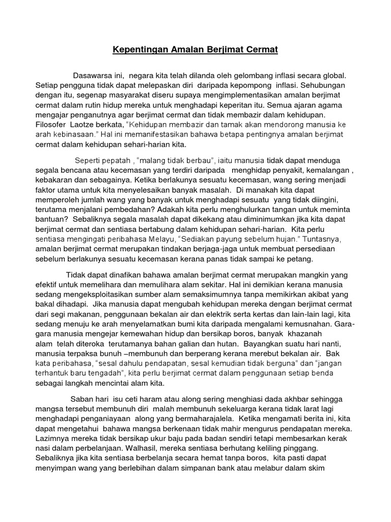 Kita perlu berjimat cermat sama ada dalam. Huraian karangan anda hendaklah antara 200 hingga 250 patah perkataan. Contoh karangan amalan berjimat cermat cccontoh otosection. Kebaikan berjimat cermat karangan :